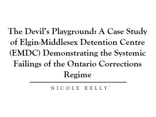 A Case Study of Elgin-Middlesex Detention Centre (EMDC) Demonstrating the Systemic Failings of the Ontario Corrections Regime, by Nicole Kelly.